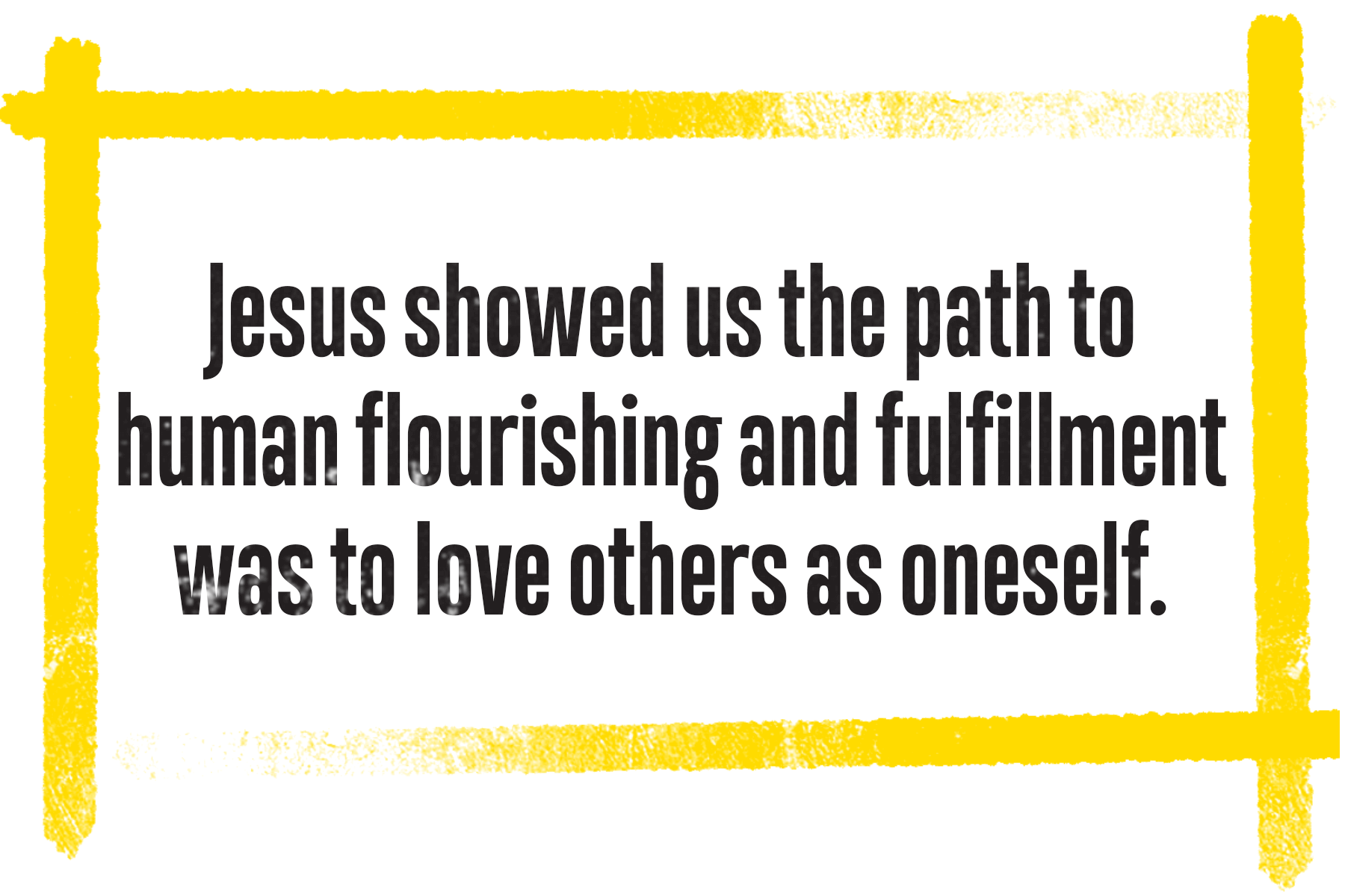So what could possibly be louder and more powerful than hate? Love can. But not just any love. Confounding love. Unconditional love. Sacrificial love. The love we see in Jesus. This shocking and even revolutionary figure — who challenged the status quo of his time, who spoke out against the religious and political leaders of his day, who advocated for the marginalized and oppressed, but who always, always, always loved others despite their identity, beliefs, or values. Jesus showed us the path to human flourishing and fulfillment was to love others as oneself, even if it costs you your life.