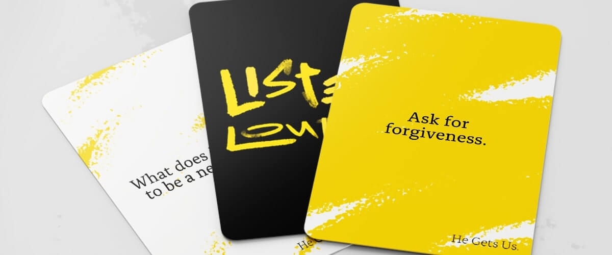Listen Louder is a card game designed to help people get to know each other in deep and meaningful ways. You see, we were looking at the life of Jesus and noticed a couple of things: one, he spent a lot of time talking with people. And two, he used those conversations to get to know people deeply and push them to live selfless lives. A lot of us have part one of the equation covered, but we don’t even know where to start with the second part.