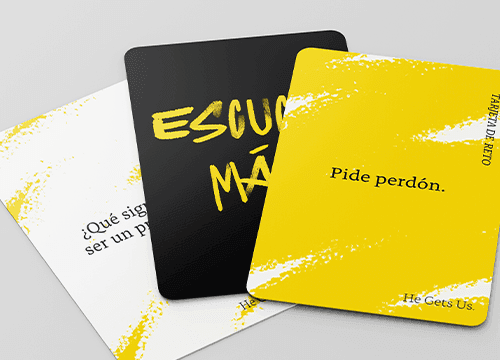 Con eso en mente, si tienes algunas fotos navideñas notables que nunca llegarían a estar en la tarjeta navideña, nos encantaría que las compartieras tú mismo usando #HeGetsUs. Tenemos la esperanza de que la colección que resulte nos haga reír a todos, nos muestre que no estamos solos en el caos y nos recuerde lo imperfecta y difícil que fue esa primera Navidad y lo real que ha sido cada una desde entonces.